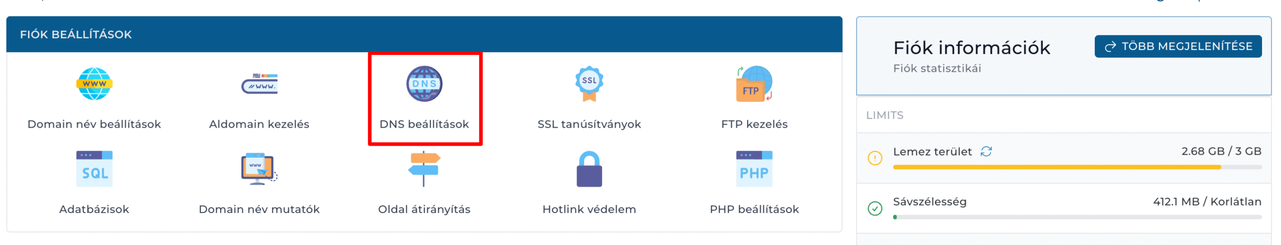 - A főmenüben keresd meg: Fiókkezelés → DNS beállítások