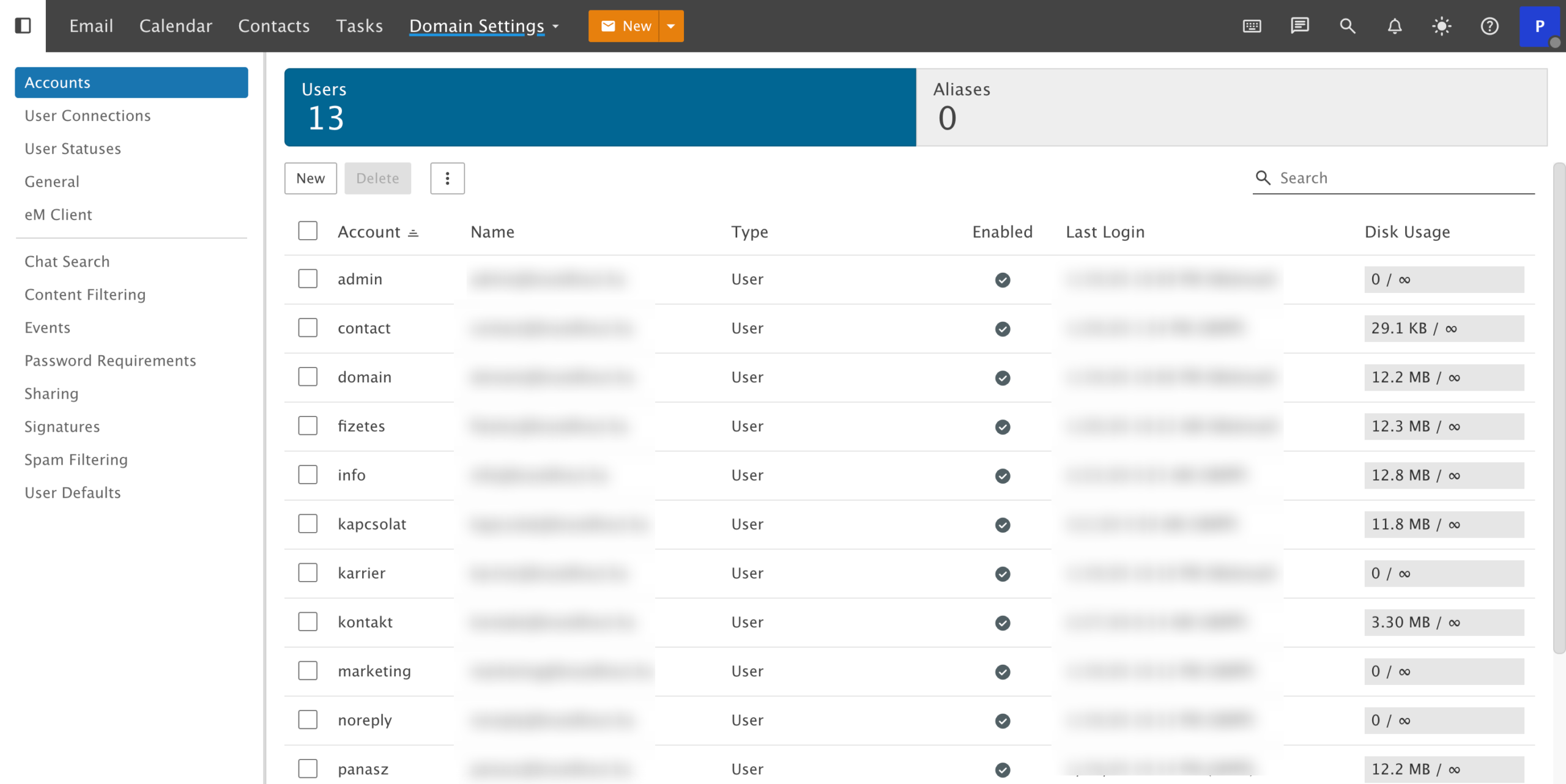 Itt találod az adott domainhez tartozó levelezési beállításokat, beleértve az alias email címeket is.